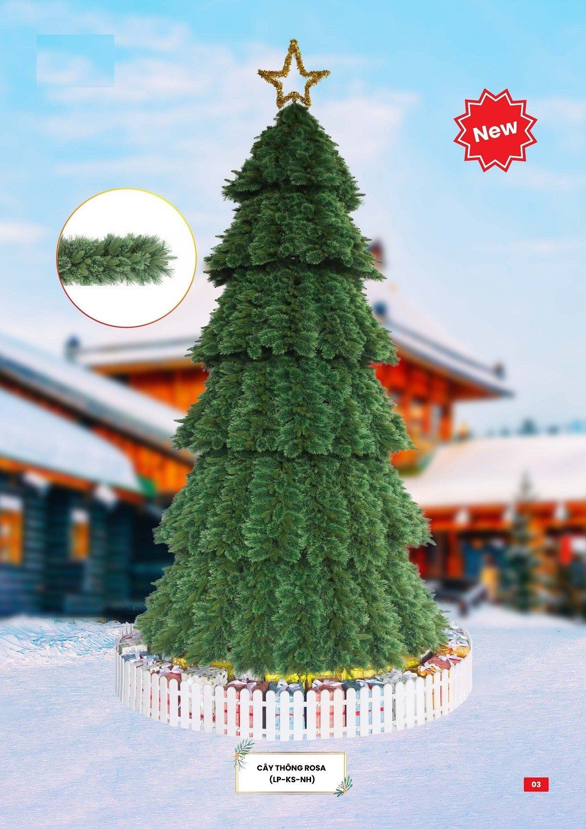 Cây thông được tặng kèm dây kim tuyến và ngôi sao màu ngẫu nhiên, không bao gồm hộp quà và hàng rào trắng khách hàng có thể lựa chọn thêm các sản phẩm trang trí khác tại shop.