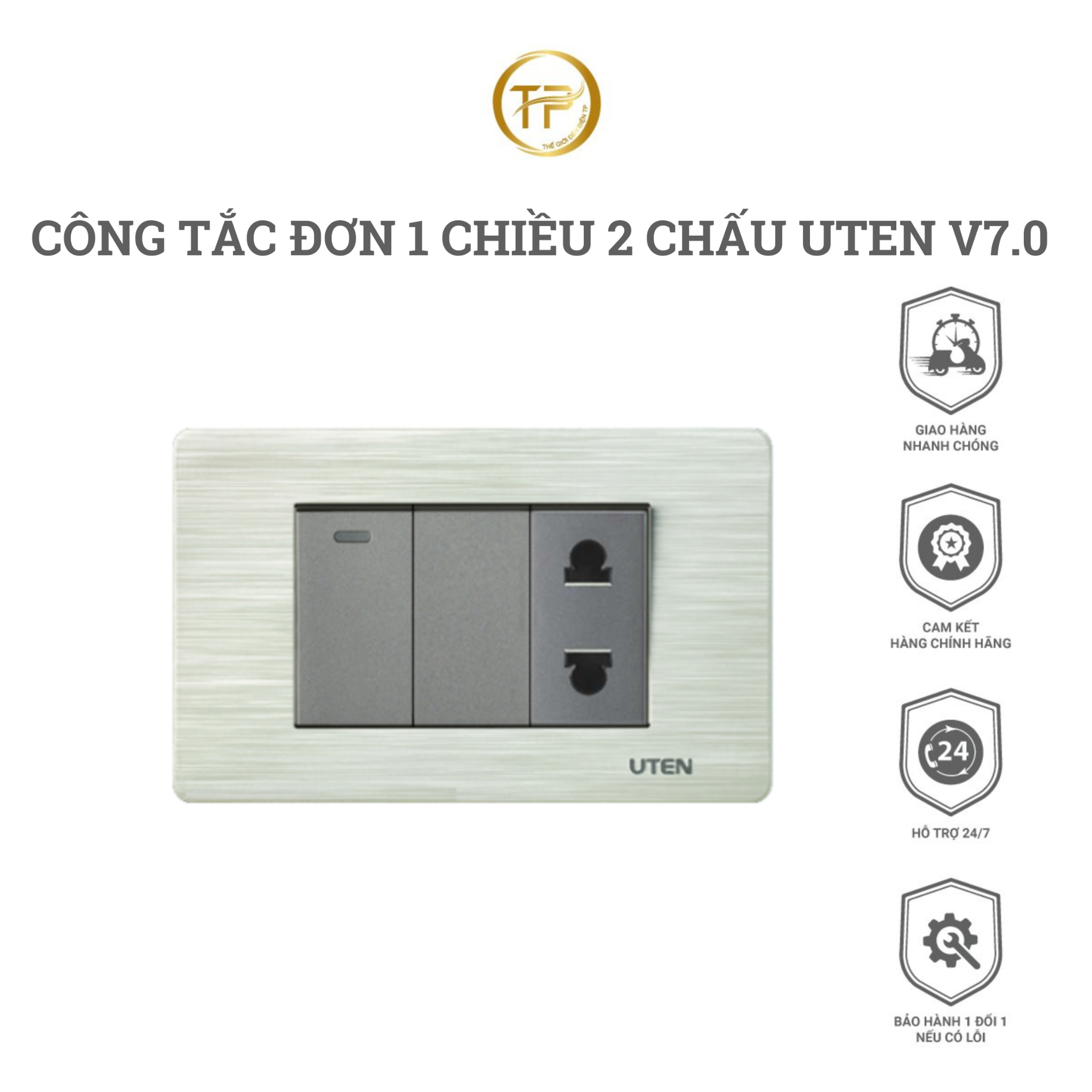 Công tắc đơn 1 chiều ổ cắm 2 chấu UTEN V7.0