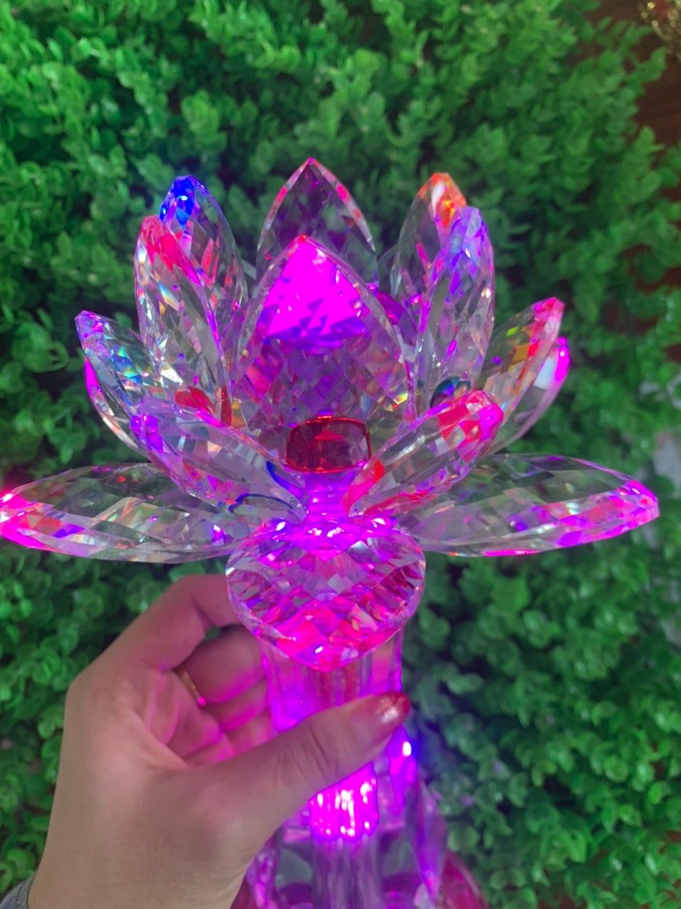 ⏩- Toàn bộ thân đèn và bông sen được làm từ Pha Lê nguyên khối, cho ánh sáng đều màu và rực rỡ, huyền ảo.