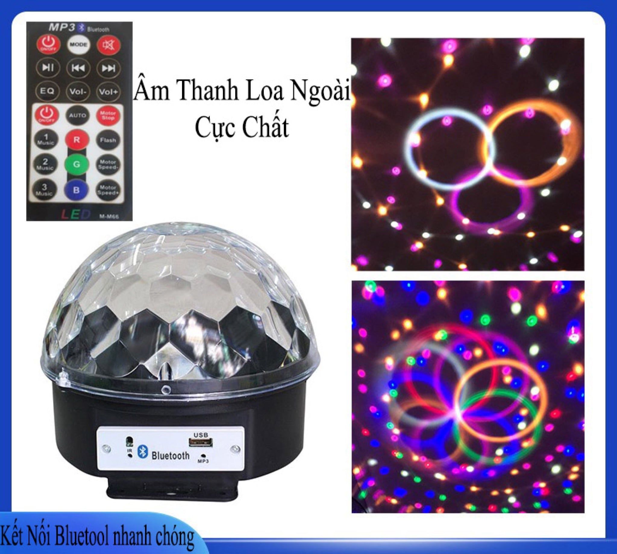 Bộ đèn led cảm ứng theo nhạc gồm: 1 cầu xoay, 1 remote, 1 USB