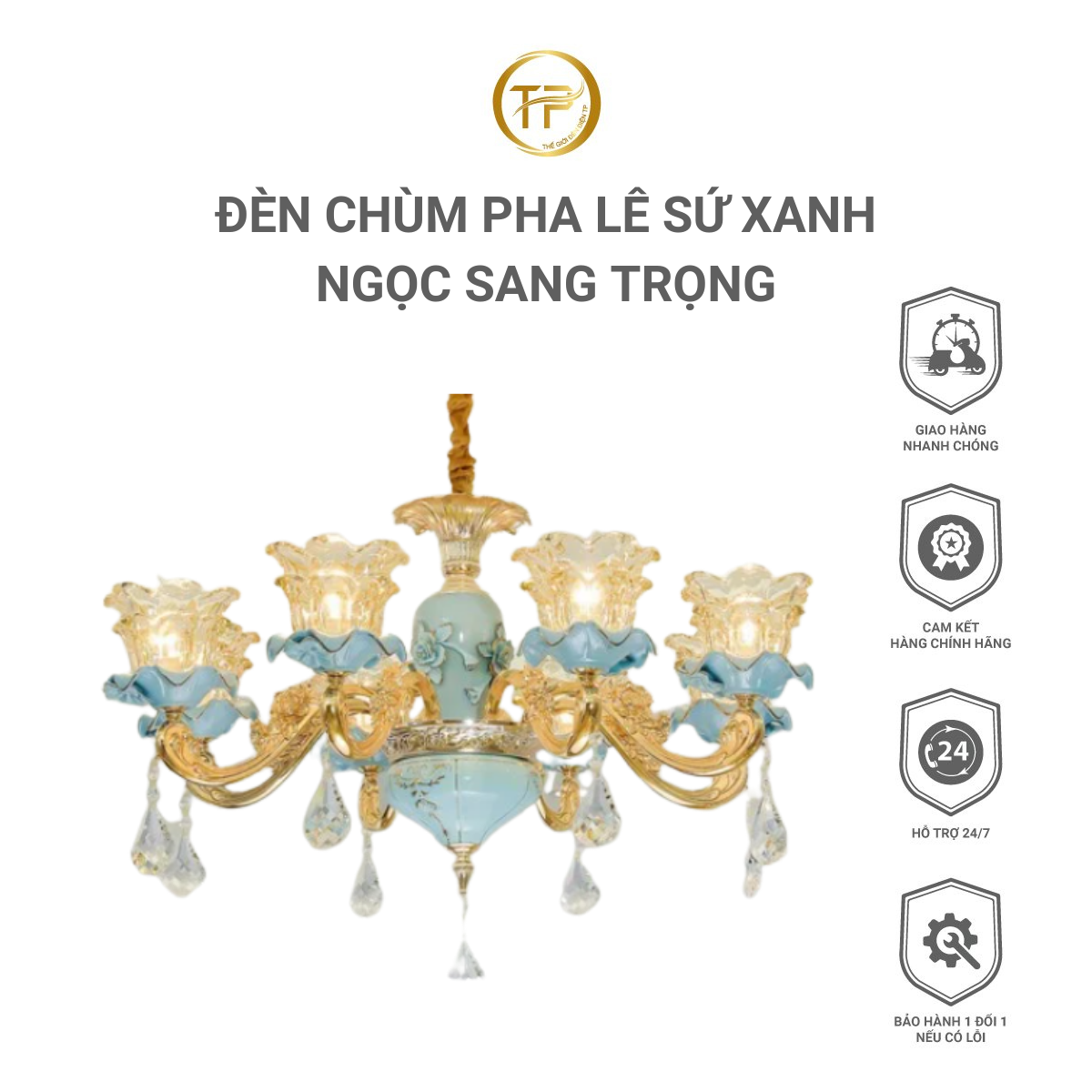 ĐÈN CHÙM PHA LÊ SỨ XANH NGỌC SANG TRỌNG (HÀNG ĐẶT 10 -15 NGÀY)