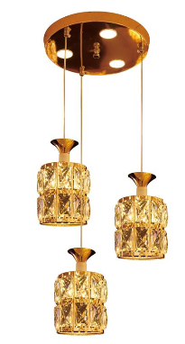 Đèn thả sử dụng 3 khối pha lê hình chữ nhật với chiều rộng 120mm mỗi khối. Đèn thả đem đến vẻ đẹp sang trọng và đầy đủ ánh sáng cho khu vực bàn ăn, nhà bếp, quầy bar, quán cafe….