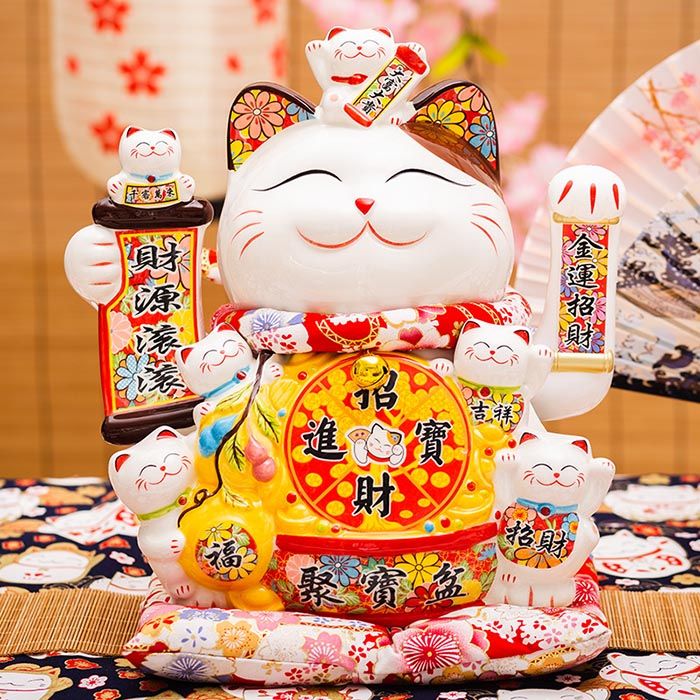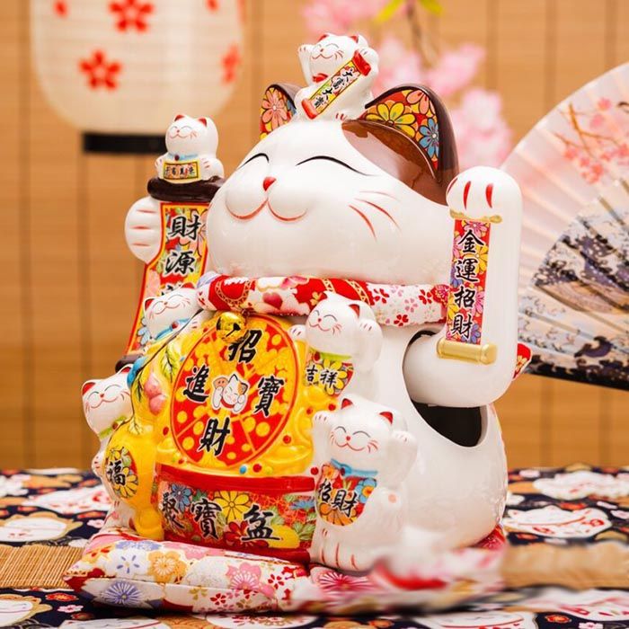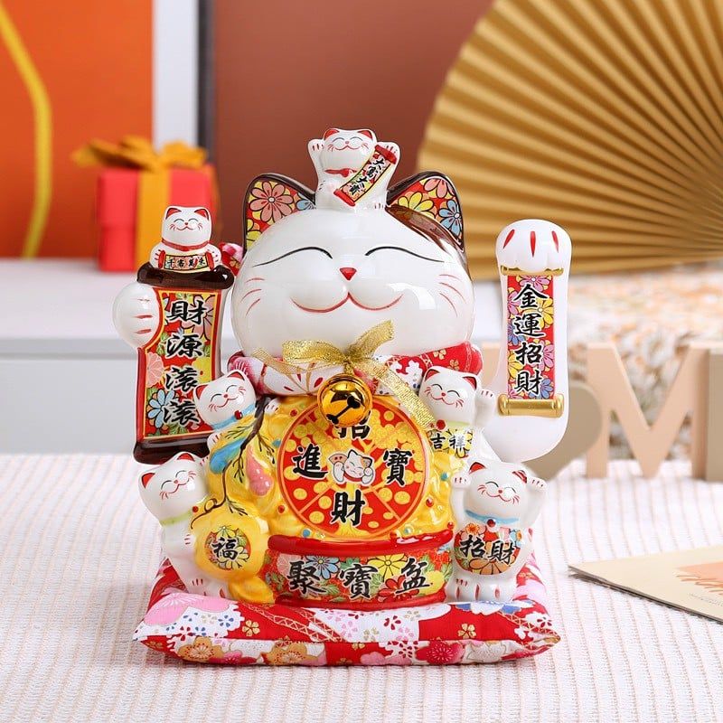 – Chất liệu: Mèo thần tài được làm từ gốm cao cấp – nung ở nhiệt độ cao, đảm bảo các tiêu chuẩn nghiêm ngặt nhất trong quá trình nung gốm sứ. Chính vì thế những chú mèo thần tài luôn được đảm bảo độ sáng bóng và màu tươi mới, không bị bay màu hay đổi màu theo thời gian.