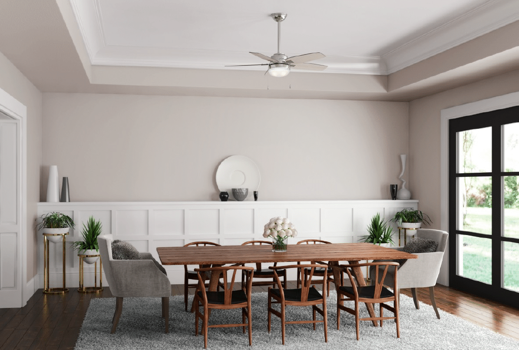 Quạt trần Hunter Claudett thường được các kiến trúc sư kết hợp cùng nội thất đơn giản, không gian chúng trọng ánh sáng tự nhiên, vừa có thể làm mát lại trang trí không gian thêm ấn tượng.