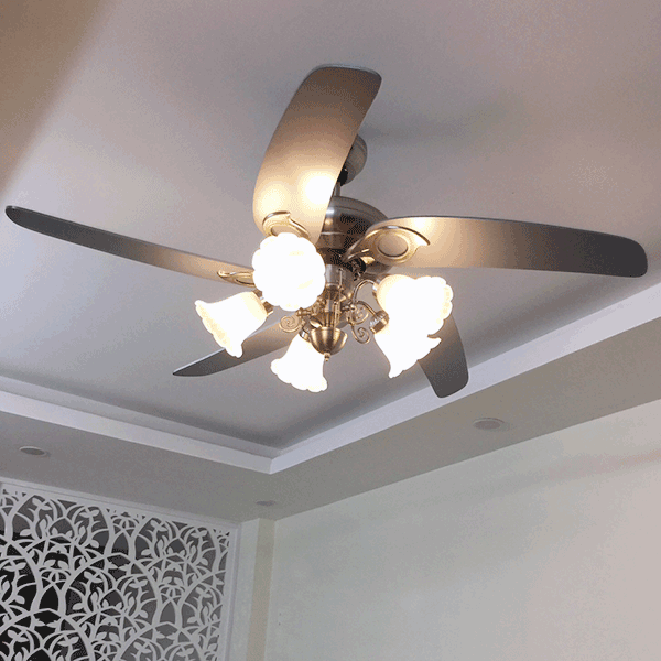 • Quạt còn tích hợp thêm đèn chùm 5 chao đèn với 5 đèn LED E27 giúp chiếu sáng căn phòng nhưng không tạo nhiệt và tiết kiệm điện.